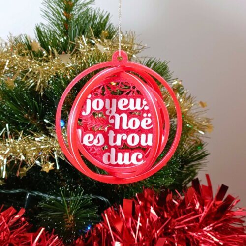 Ma boule de Noël “J’ai les boules”, c’est pas une babiole cheap achetée entre deux rouleaux de PQ parfumés. Non, c’est une vraie beauté de 9 centimètres de diamètre,imprimée en 3D et articulée s’il te plaît : les quatre cercles qui la composent se déplient délicatement pour révéler toute sa splendeur (et ton niveau de ras-le-bol).