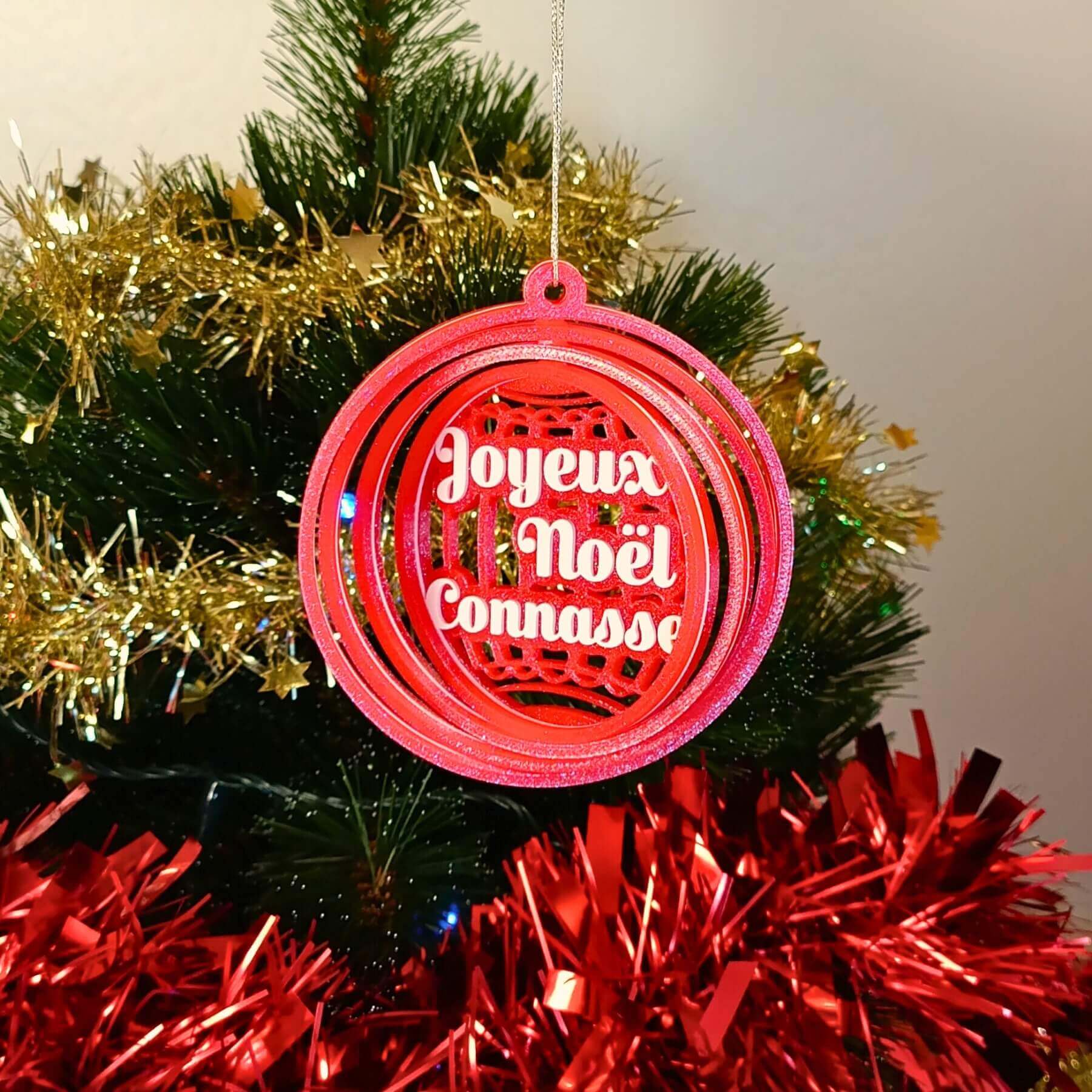 Moi, c’est Tatie Paulette, et cette année, j’ai voulu faire simple : “Joyeux Noël connasse.” Ça évite les faux sourires, les politesses forcées et les “oh fallait pas” hypocrites. Crois-moi, cette boule de Noël humoristique dit tout haut ce que la moitié de la table pense tout bas.