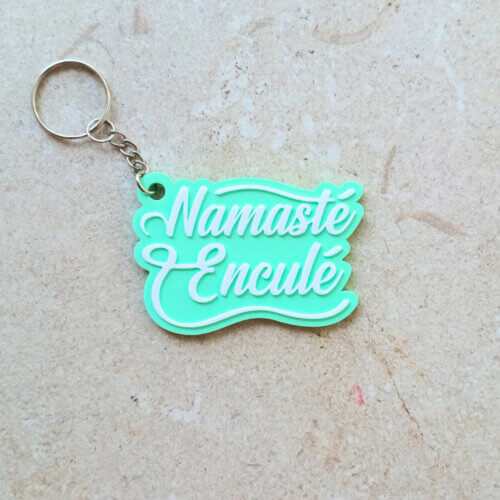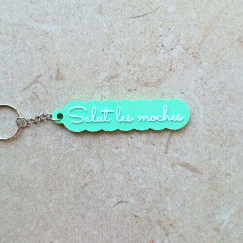 Un mot doux, une déclaration affectueuse, un petit câlin verbal… enfin presque. Le porte-clés parfait pour rappeler à ta meilleure pote qu’elle reste ta connasse préférée. Bleu ciel, vert givré pâle ou rose clair : l’insulte n’a jamais été aussi mignonne.